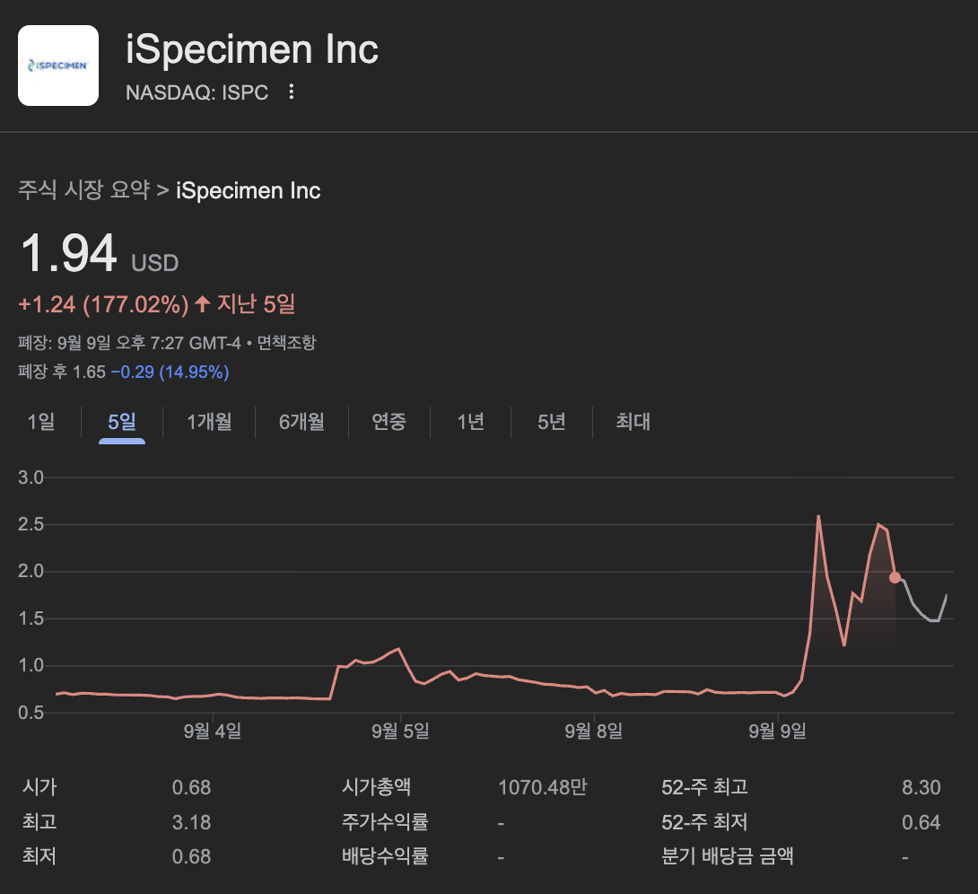| 아이스페시맨(ISPC) 159.67% 급등: 파트너십 확대 소식이 랠리 촉발 (1) | 2025.09.10 |