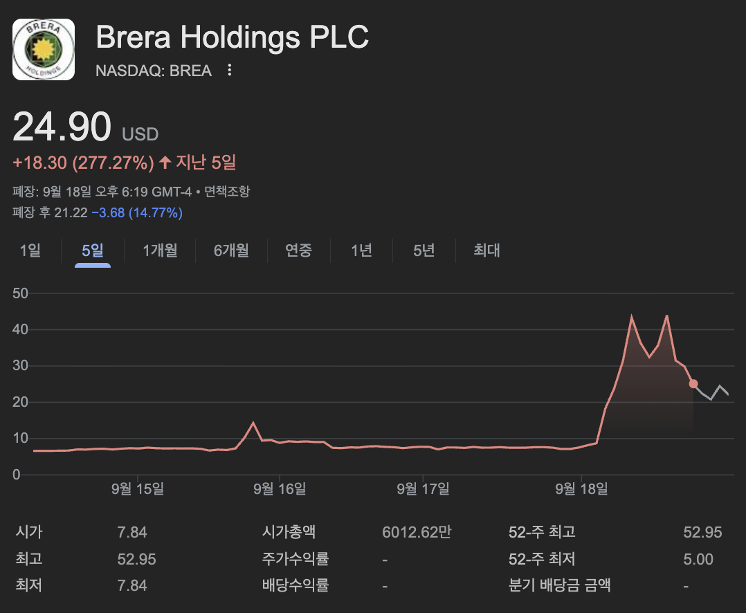 브레라 홀딩스(BREA) 급등 분석