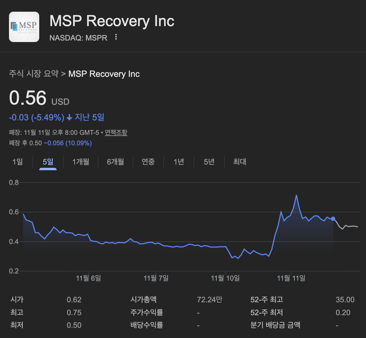 - 시장 전체 분위기: 트럼프 재선 효과와 Fed 금리 인하 기대로 저가 헬스케어 주식 랠리. MSPR의 $2.9M 정산 합의(9월 19일) 여파가 지속되며 투자자들의 숏 커버링을 유발했을 가능성 큽니다.
