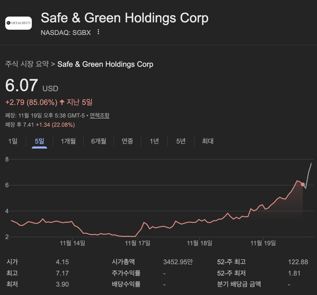 오늘은 특별히 주목받은 SGBX (Safe & Green Holdings Corp.) 주식에 대해 이야기해보려 합니다. 어제 미국 시장에서 SGBX 주가가 무려 78.01% 상승하며 $6.07로 마감했습니다. 이는 전략적 확대 계획과 모듈러 건축 수요 증가가 투자자들의 매수 심리를 자극한 결과로 보입니다. 상승 이유부터 기업 분석, 그리고 앞으로의 전망까지 자세히 짚어보겠습니다. 모든 데이터는 Yahoo Finance와 신뢰할 수 있는 소스에서 확인한 최신 정보입니다.