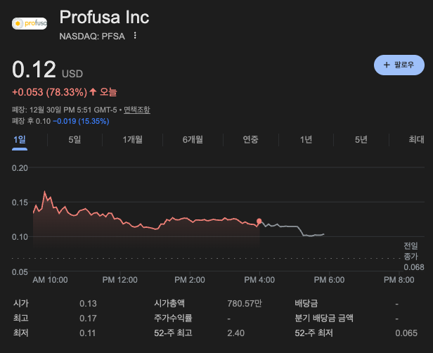 결론: 프로퓨사(PFSA)의 78% 폭등은 **"주주들이 가장 두려워하던 물량 폭탄이 사라졌다"**는 안도 랠리입니다. 혁신적인 바이오센서 기술을 가졌지만, 재무적 체력은 여전히 약합니다. 이번 상승을 단기 트레이딩 기회로 활용하되, $0.35라는 새로운 저항선을 염두에 두고 철저하게 리스크를 관리해야 합니다. 장기 투자는 회사가 스스로 돈을 벌기 시작하는 시점(2026년 이후)에 고려해도 늦지 않습니다.