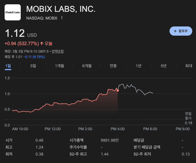 결론: 모빅스 랩스(MOBX)의 이번 폭등은 **"기술적 실체를 가진 소형주가 '미 국방부'라는 거대 고객을 만나 신분 상승을 이뤄낸 결과"**입니다.
