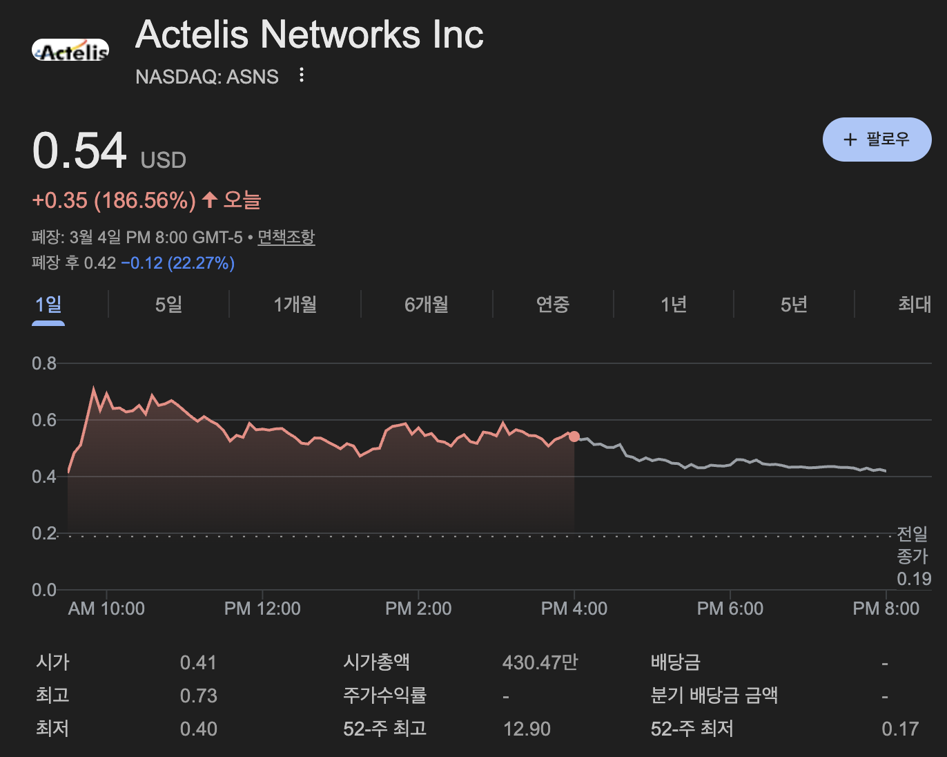 3월 5일 목요일, 나스닥 전광판에서 가장 화려하게 빛난 '오브제(Objet)'는 단연 **액텔리스 네트웍스(Ticker: ASNS)**였습니다. 1달러 미만의 동전주가 어떻게 하룻밤 사이에 시장의 주인공이 되었는지, 그 구체적인 이유를 파헤쳐 보겠습니다.