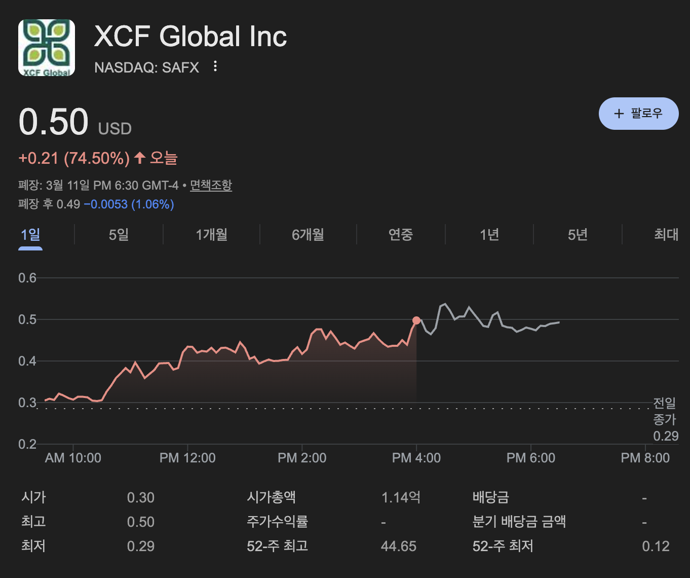 결론: XCF 글로벌(SAFX)의 이번 폭등은 **"단순한 기대감을 넘어 실제 돈(1,000만 달러)과 실제 물량(합병 승인)이 찍힌 '확정적 반등'의 신호"**입니다.