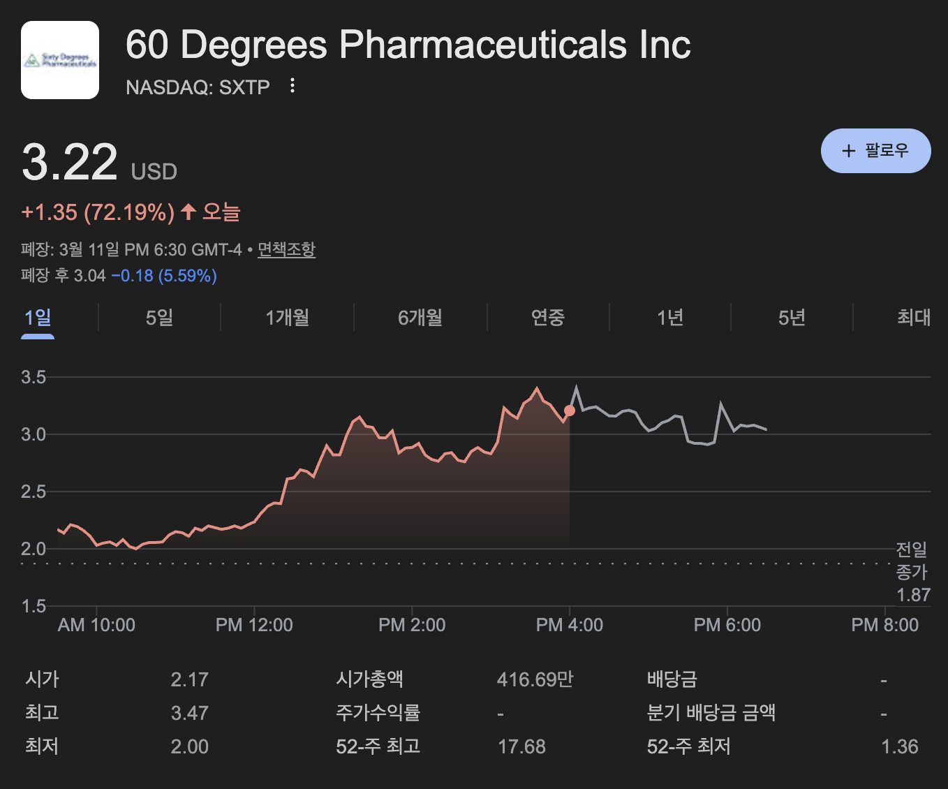 ⚠️ 면책 조항 (Disclaimer) 본 블로그의 내용은 개인적인 시장 분석 및 의견이며, 특정 종목의 매수/매도를 추천하는 것이 아닙니다. 투자의 책임은 전적으로 투자자 본인에게 있습니다. SXTP와 같은 초소형 바이오주는 변동성이 극도로 높으니 각별히 주의하십시오.