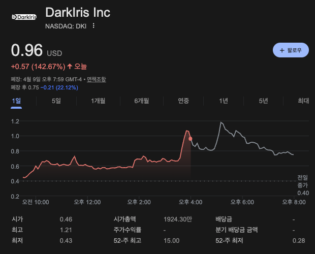 | 종목명 / 티커 | 다크아이리스 (DarkIris Inc.) / DKI |